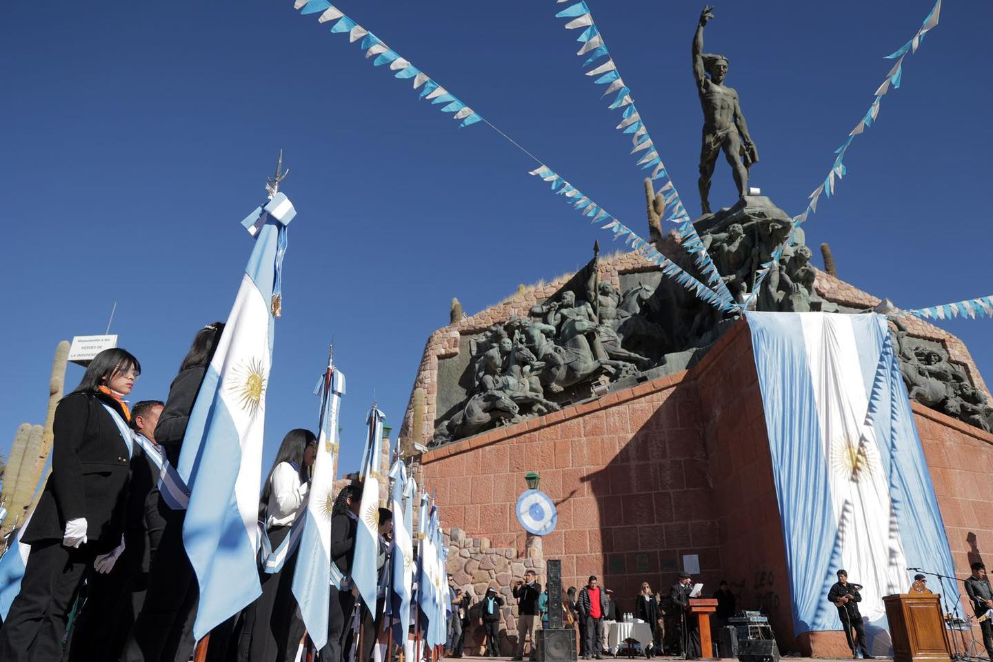 Bajo el imponente monumento a los Héroes de la Independencia, Humahuaca se vistió de gala para conmemorar el 209° aniversario de la Declaración de la Independencia Argentina.