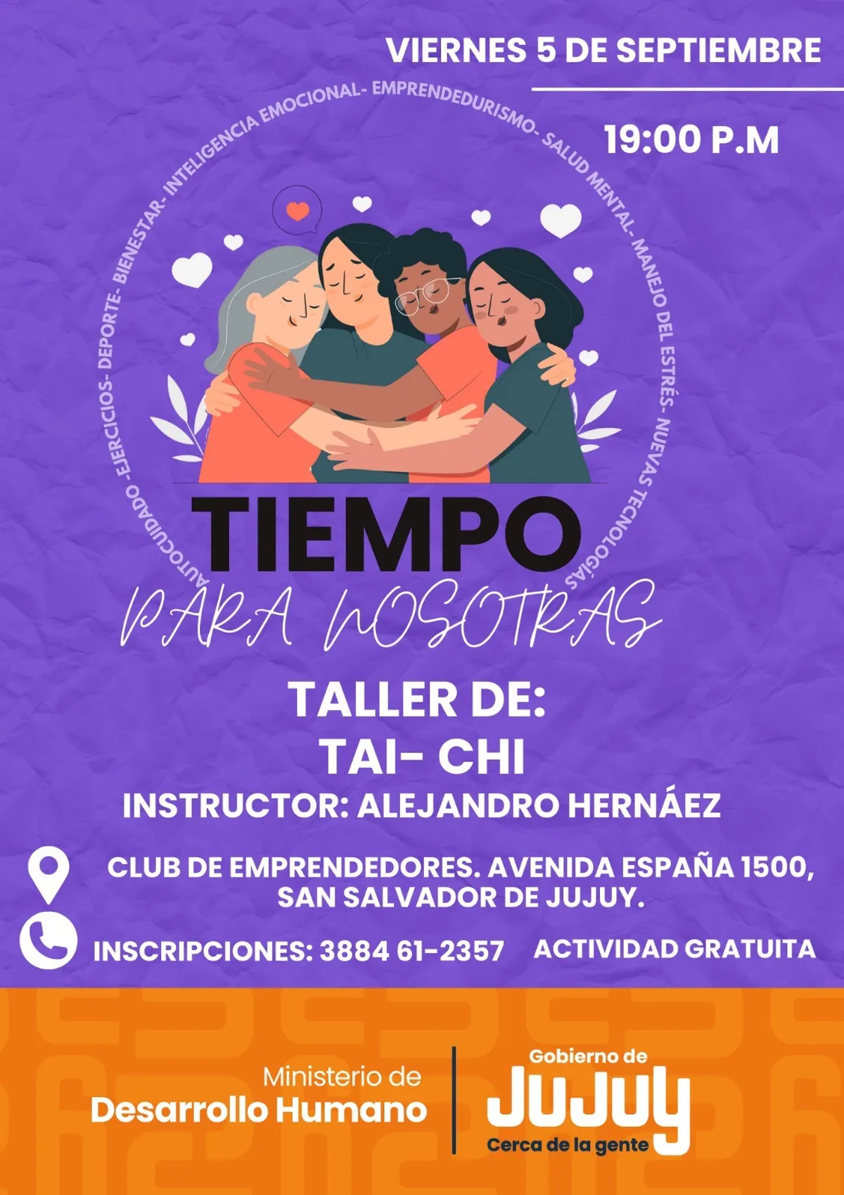 El Ministerio de Desarrollo Humano de Jujuy, a través de la Secretaría de Desarrollo Integral y la Coordinación de Calidad de Vida, invitan a participar del nuevo encuentro del ciclo “Tiempo para Nosotras”, que se llevará a cabo el próximo viernes 5 de septiembre a las 19 horas en el Club de Emprendedores.
