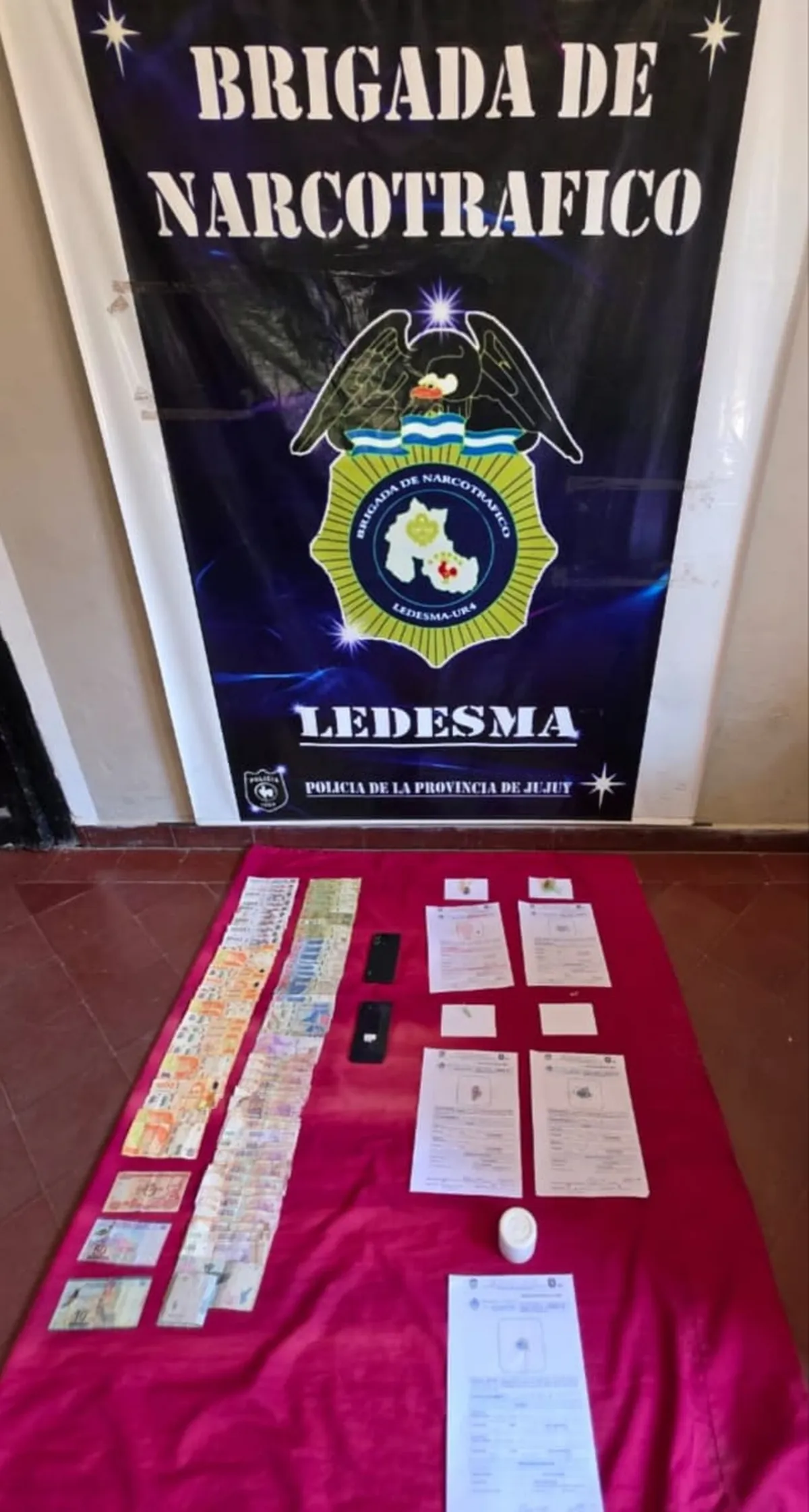 Dinero en efectivo: Se incautó un total de $1.710.120 argentinos, además de 200 dólares y moneda boliviana.