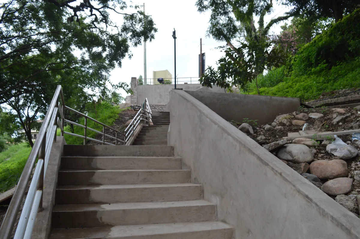 Allí ya se concretaron trabajos de cordón cuneta en ambos accesos, reparación de carpetas de piso sobre escalones, construcción de veredas nuevas, rampas de acceso, instalación de barandas y pasamanos, reparación y colocación de columnas de alumbrado y pintura de barandas. Restan tareas finales de colocación de bolardos en veredas y pintura reglamentaria en cordones, rampas y paredes de la escalera.