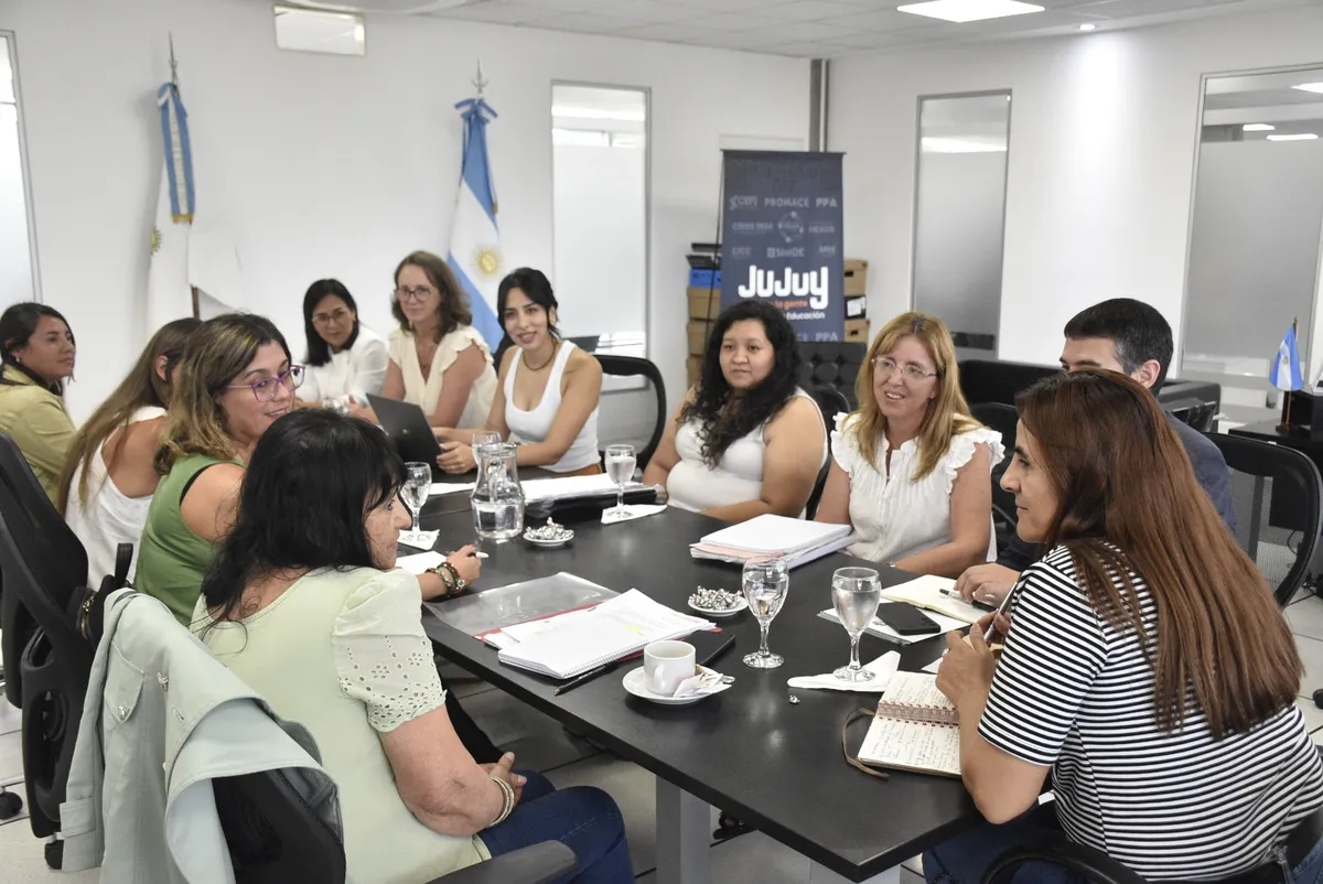 La ministra de Desarrollo Humano, Marta Russo Arriola, y la ministra de Educación, Daniela Teseira, junto a sus equipos técnicos, mantuvieron una reunión de trabajo con el objetivo de consolidar una estrategia interministerial orientada a garantizar la seguridad alimentaria en las escuelas jujeñas.