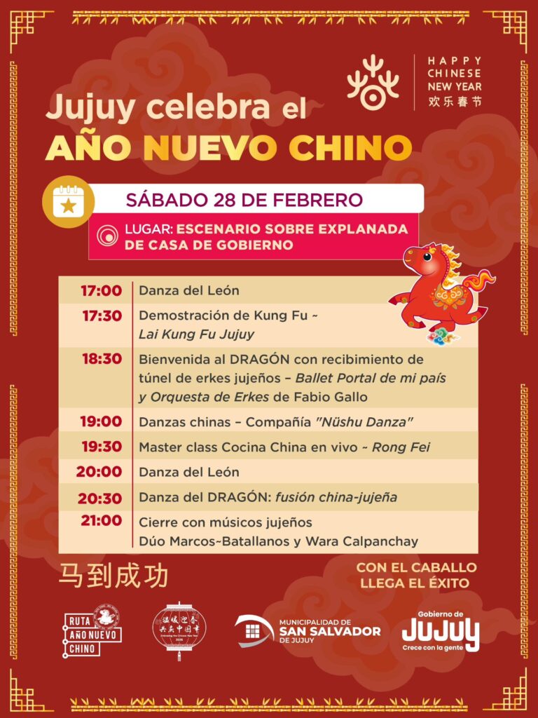 El próximo sábado 28 de febrero, a partir de las 17 horas, la explanada de Casa de Gobierno se convertirá en el escenario de una nueva celebración del Año Nuevo Chino en Jujuy, una propuesta cultural que ya forma parte del calendario de eventos destacados de la provincia y que convoca a jujeños y visitantes a vivir una experiencia de encuentro e integración entre culturas.