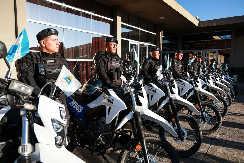 La incorporación de camionetas y motocicletas permitirá reforzar el patrullaje y la capacidad operativa de las fuerzas de seguridad en todo el territorio provincial.